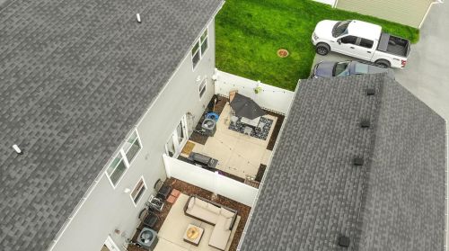The home is situated at the end of the street at 1049 117th Pl, Crown Point, IN.