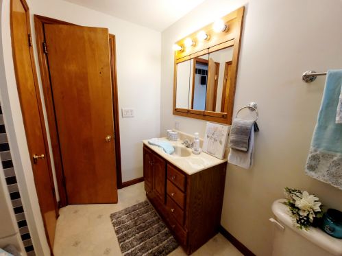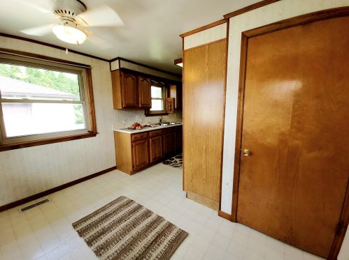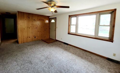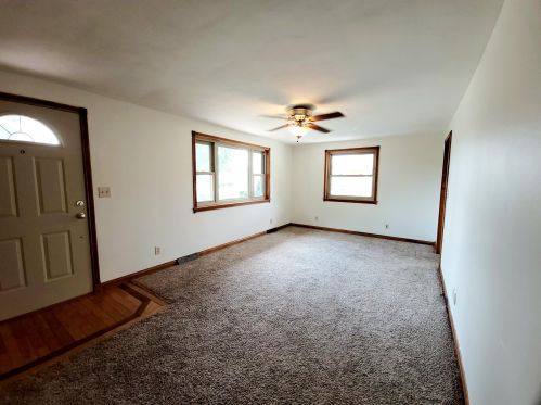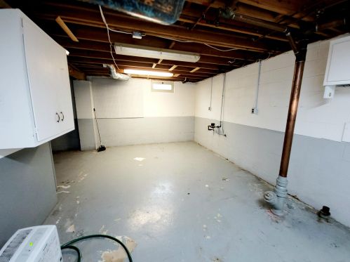 Comfortable three bedroom, with an eat in kitchen and a partially finished basement. Laundry hook...