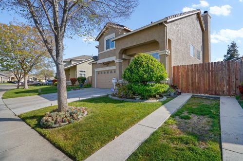The single-family estate is placed at the end of the street at 1301 Fruitwood Way, Tracy, California.