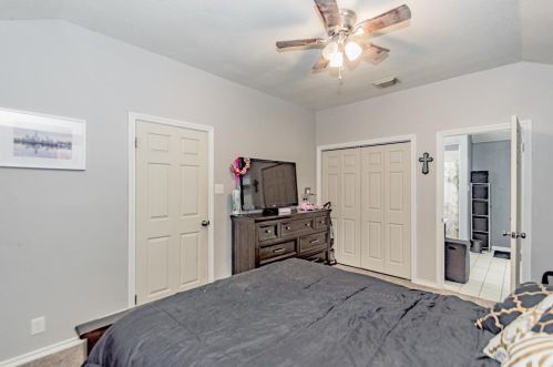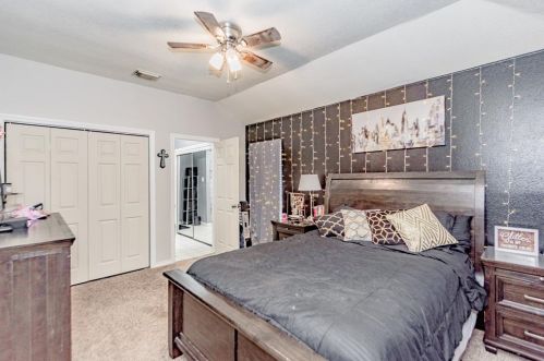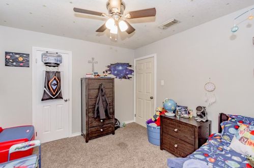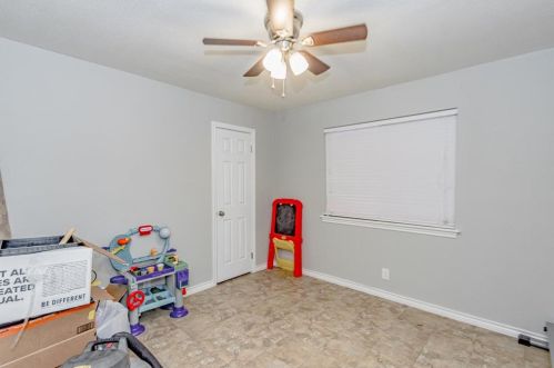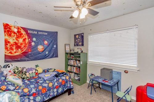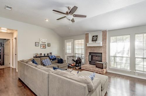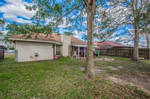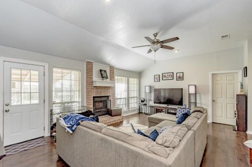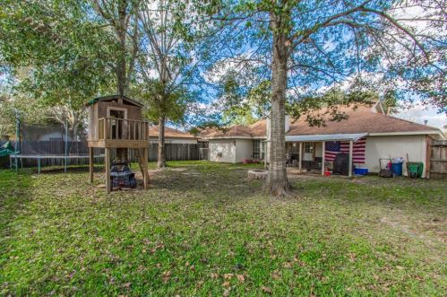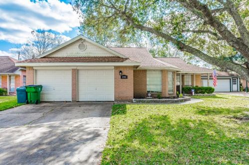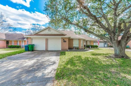 The single-family home is situated at the end of the street at 1312 Sagebrush Street, Angleton, Texas.