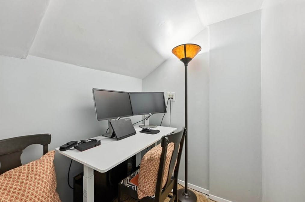 The property has a stone facade and off street parking on about one fourth of acre lot.