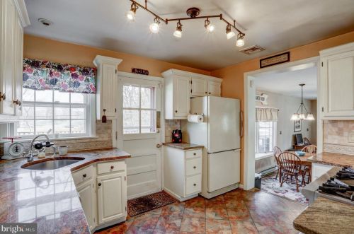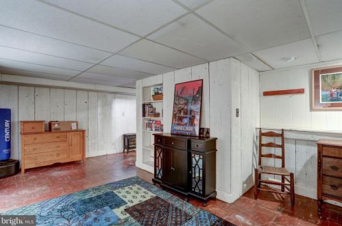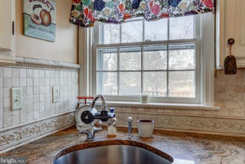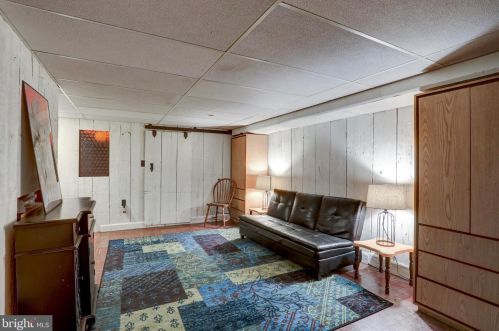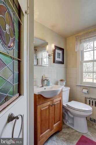 Originally built in 1951, the property has a brick facade, on street parking, slate roof, partial basement on about a half of acre lot.