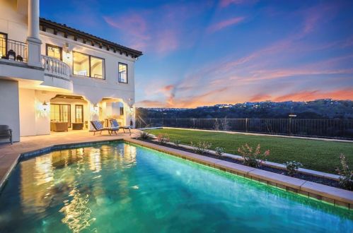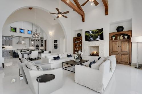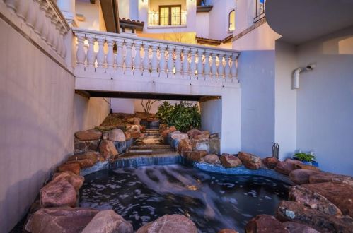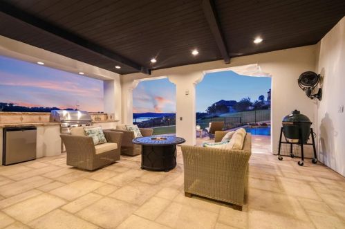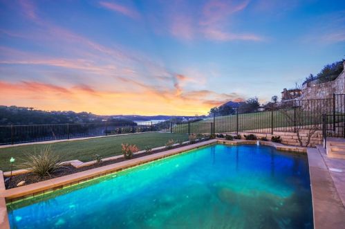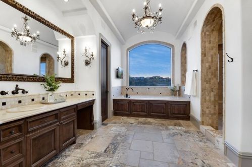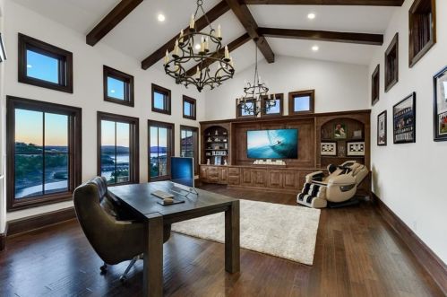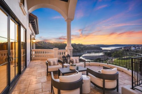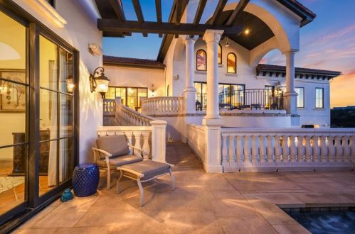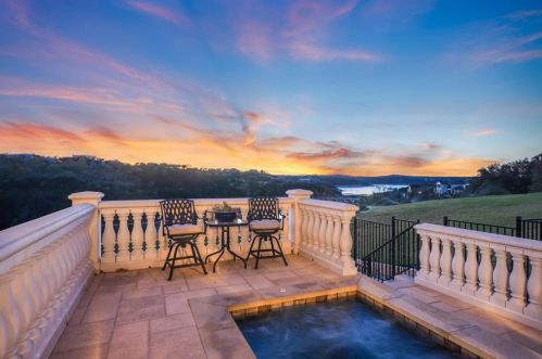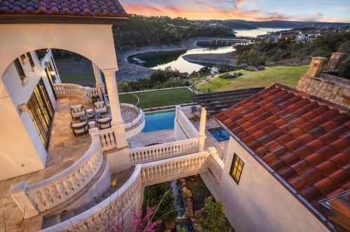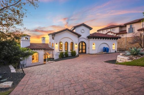 The Spanish style single-family three-story estate is placed at 217 Canyon Turn Trl, Austin, TX.