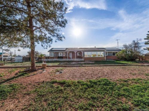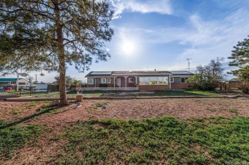 An environmentally friendly one single-family ranch at 471 County Road 10, Byers, CO.