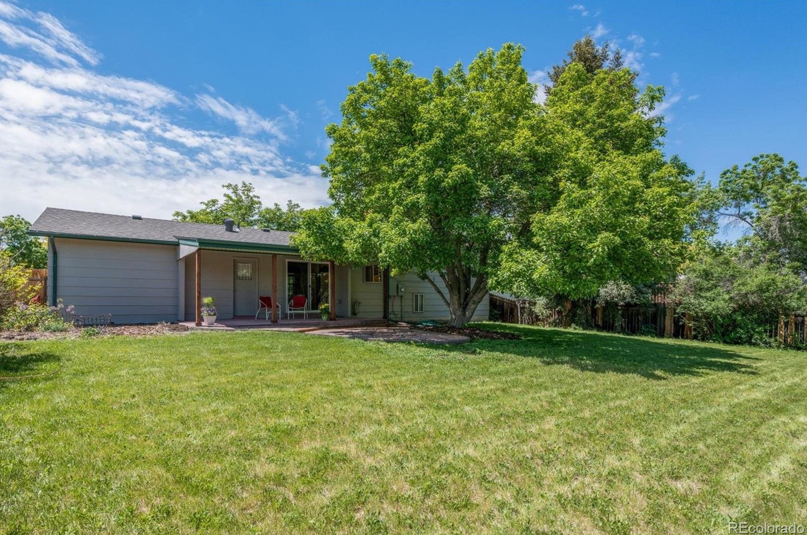 The home is placed at the end of the street at 6216 Ash Cir, Littleton, CO.