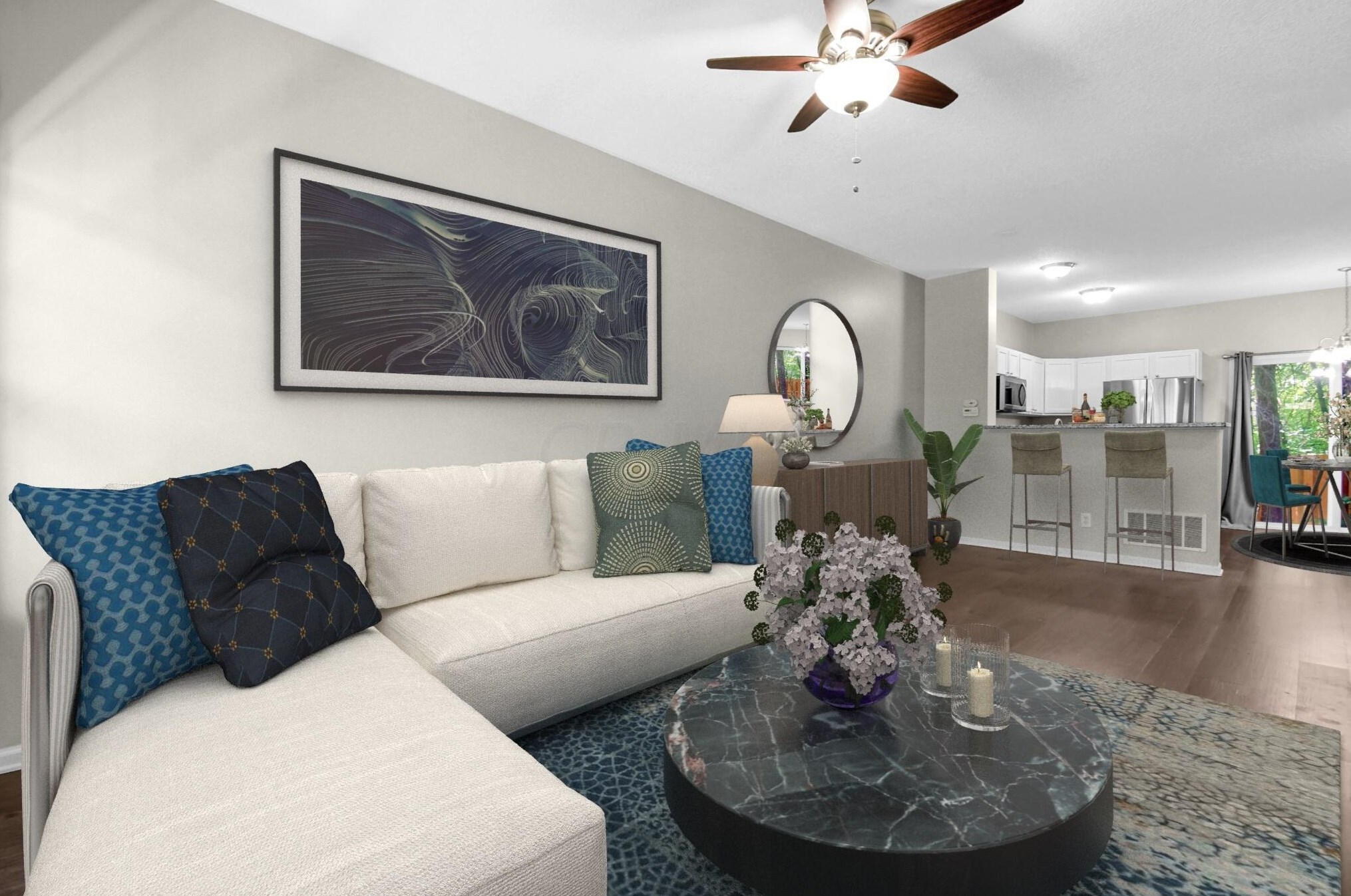 This more than twelve hundred square feet condominium offers three bedrooms and two and half bathrooms.