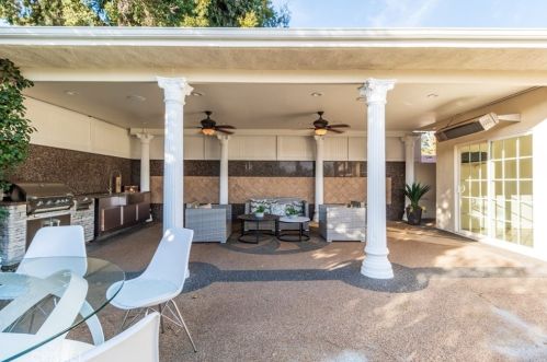 The single-family estate is situated at the end of the street at 6719 Greenbush Avenue, Van Nuys, CA.