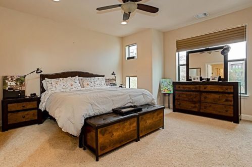 The contemporary modern style three-story residence stands at 700 Skyline Bluff Ct, Fort Worth, Texas.