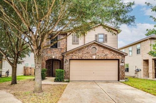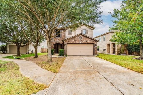 A hefty two-story single-family residence at 7300 Derby Downs Drive, Austin, TX.