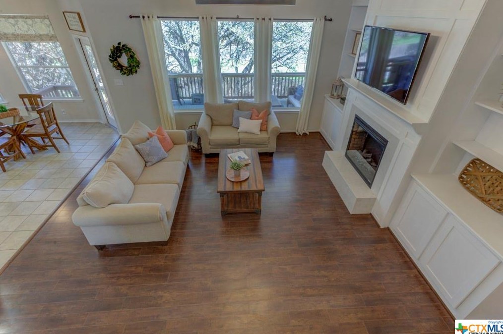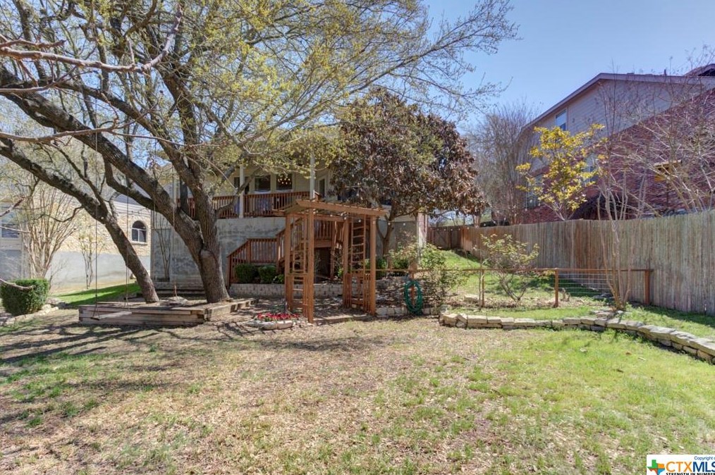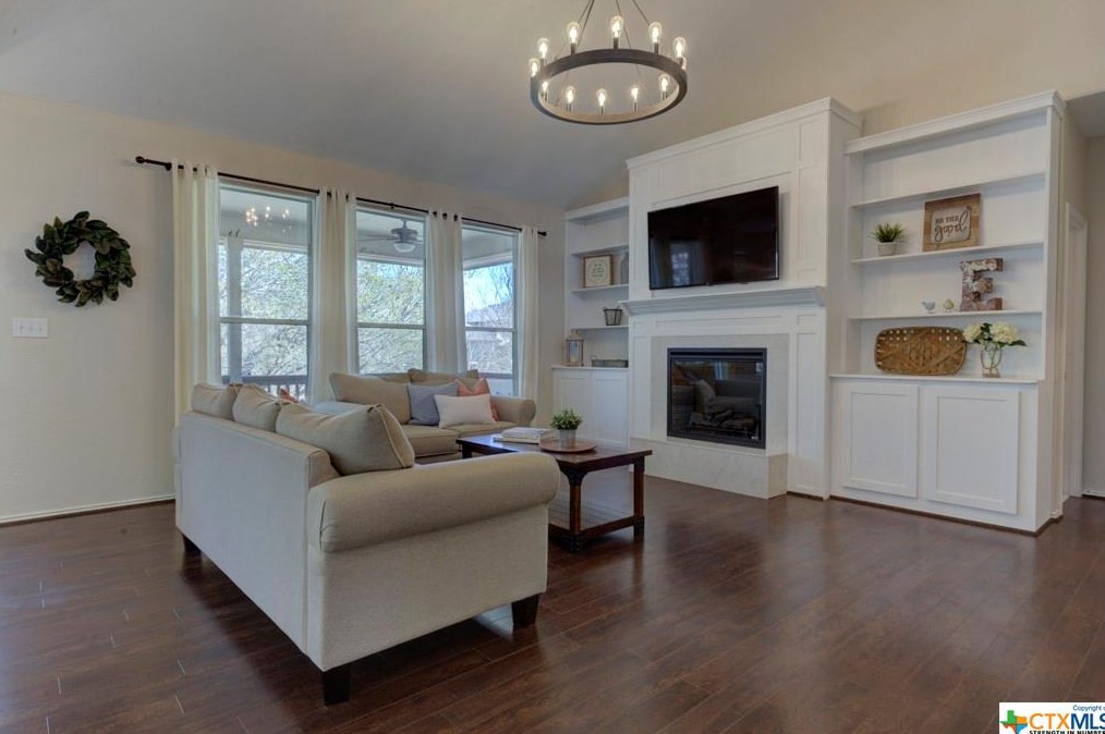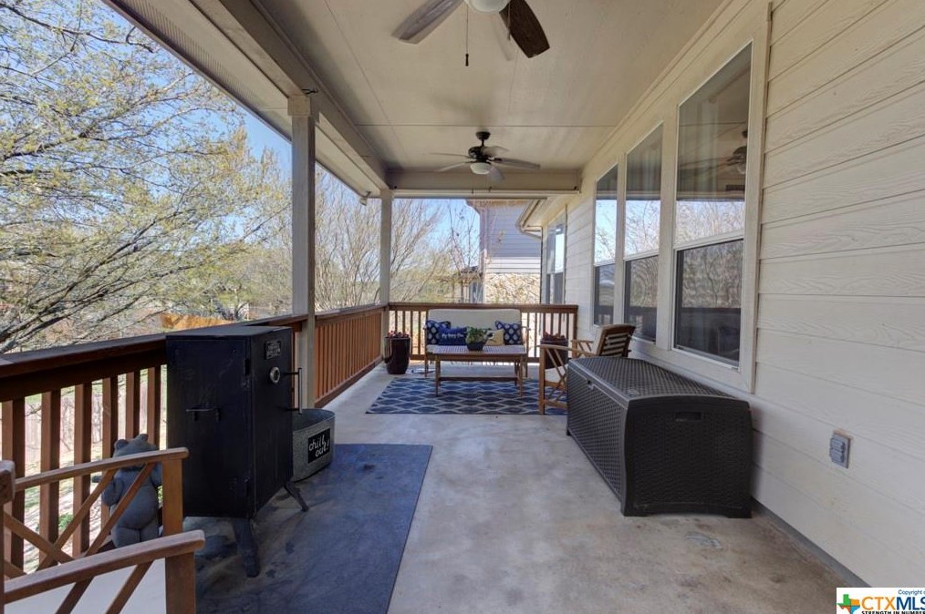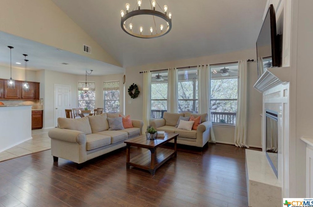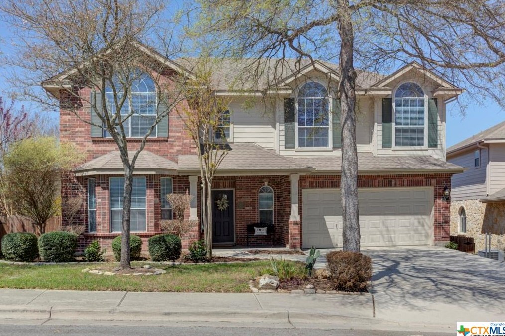 The single-family home is placed at the end of the street at 777 San Gabriel Loop, New Braunfels, TX.