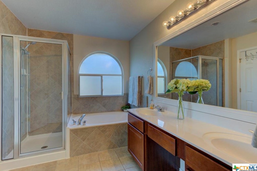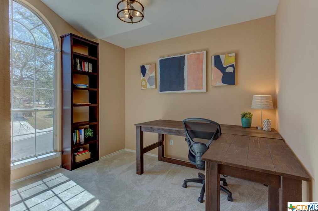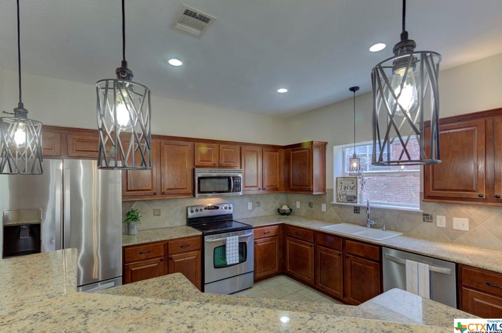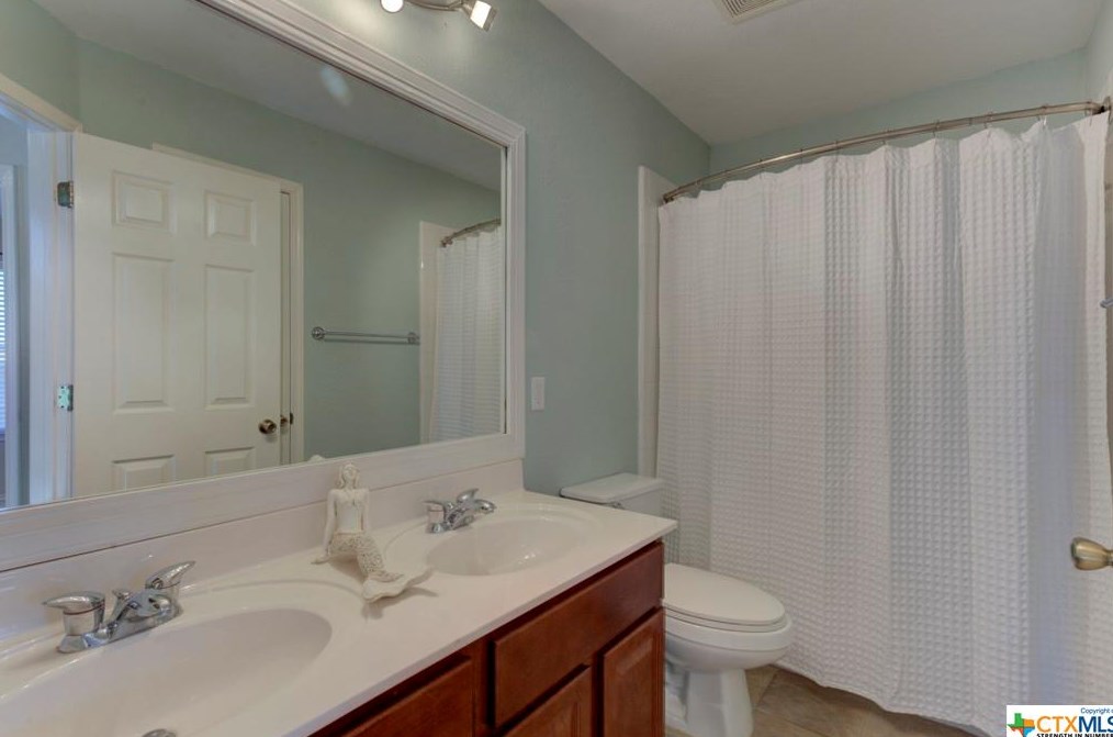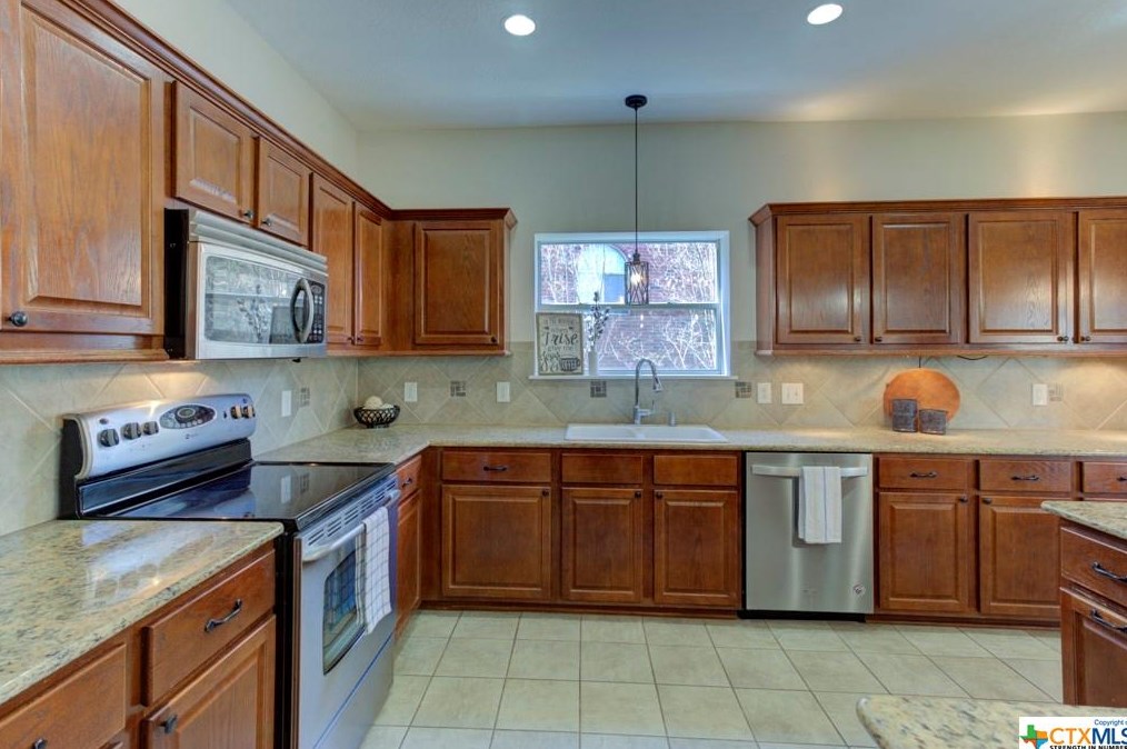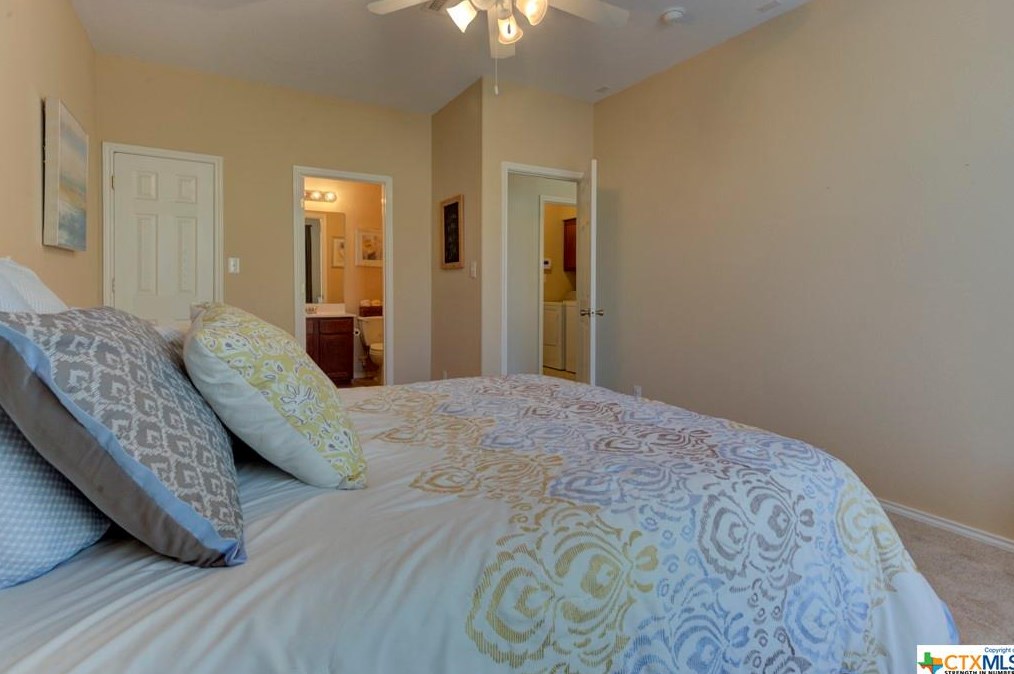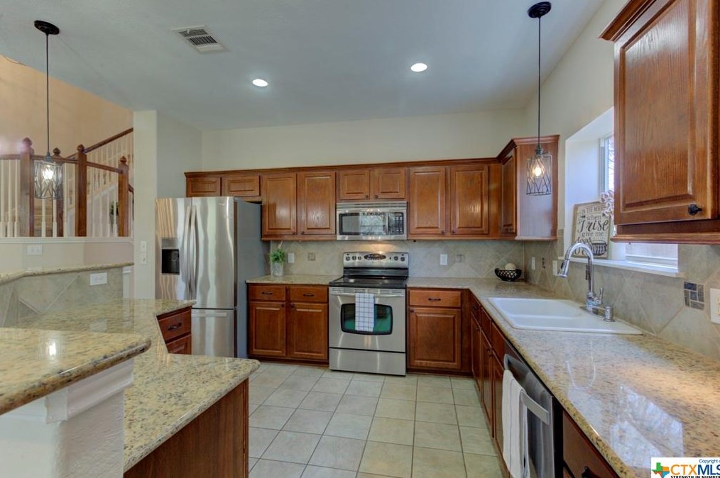 The single-family home is placed at the end of the street at 777 San Gabriel Loop, New Braunfels, TX.