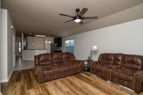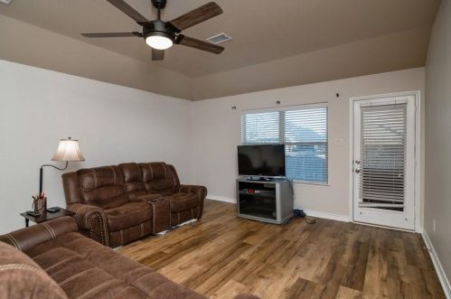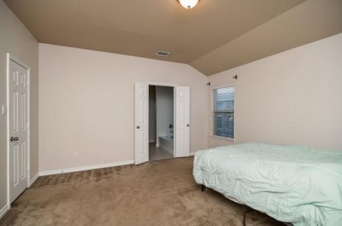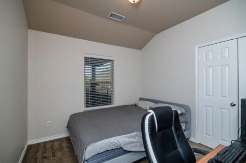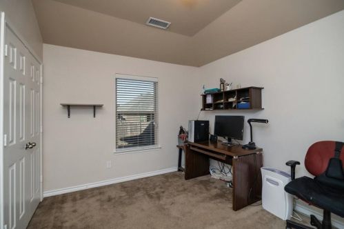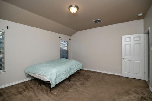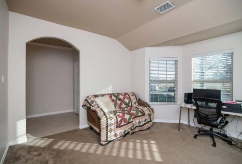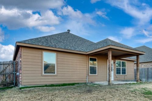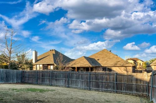 The single-family home stands at the end of the street at 8752 Vista Royale Drive, Fort Worth, Texas.