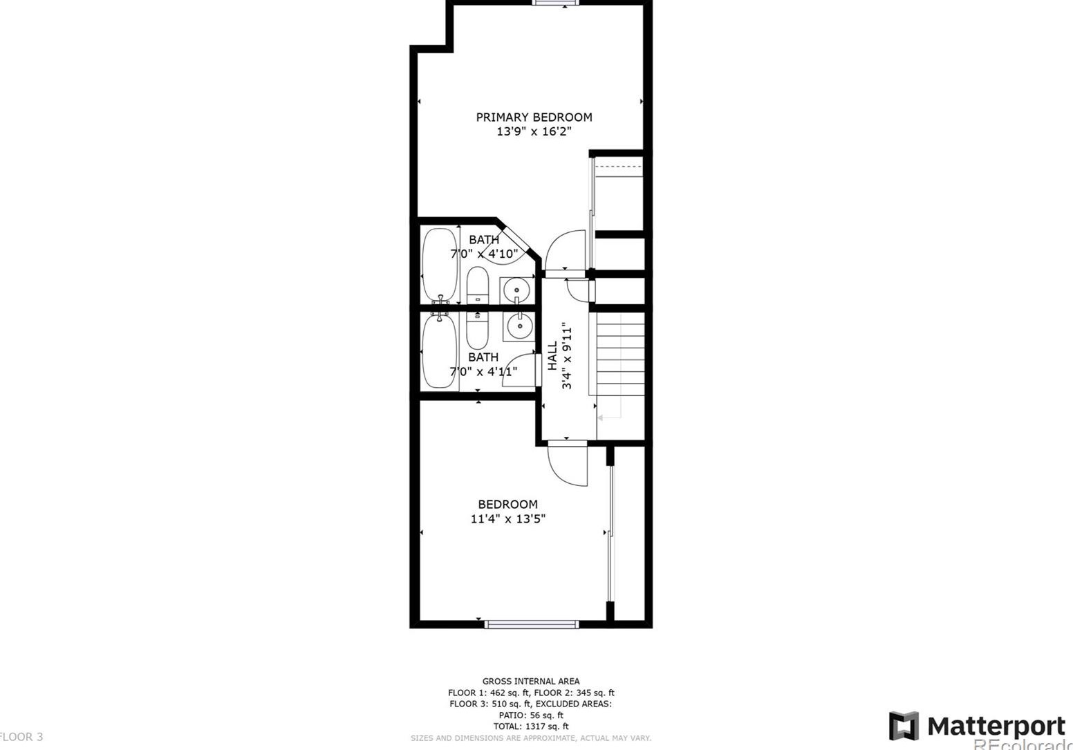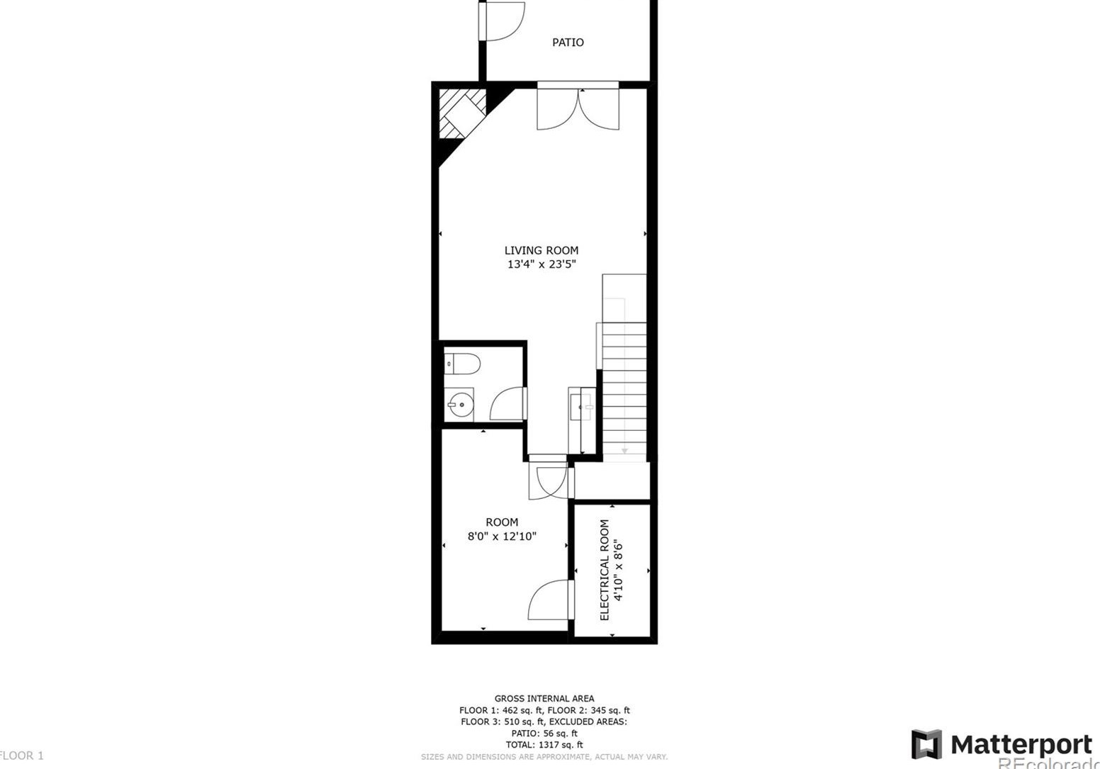 Exterior balcony, unenclosed porch