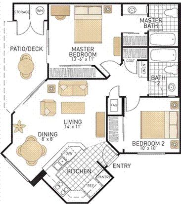 Bedrooms: 2Bathrooms: 2Area: 891 square feet