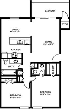Bedrooms: 2Bathrooms: 1Area: 960 square feet