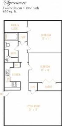 Bedrooms: 2Bathrooms: 1Area: 850 square feet