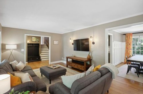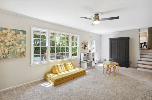This approximately twenty-three hundred square feet property was built in the sixties on 0,4 acres and it offers four bedrooms and two and half bathrooms.