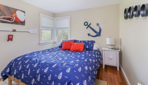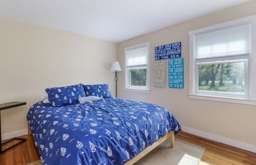 At 50 Oak Ridge Road, Eastham, MA stands a single-family bungalow.