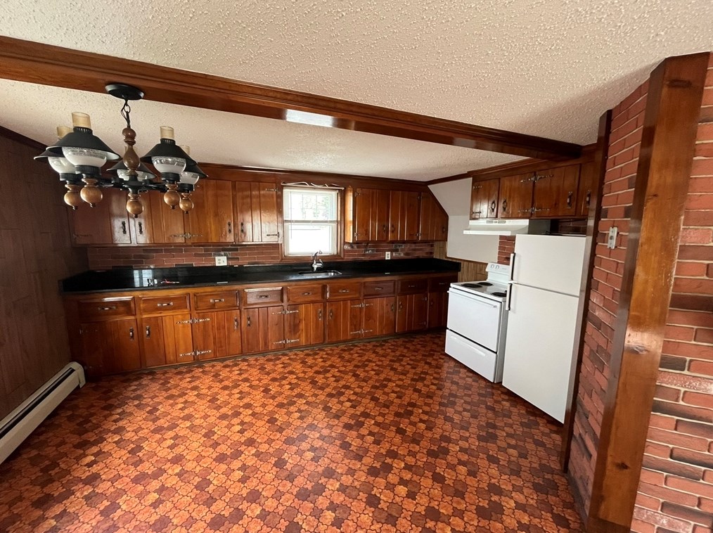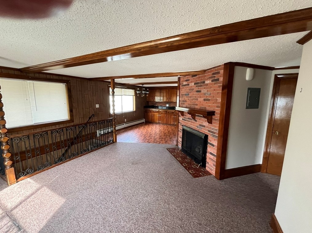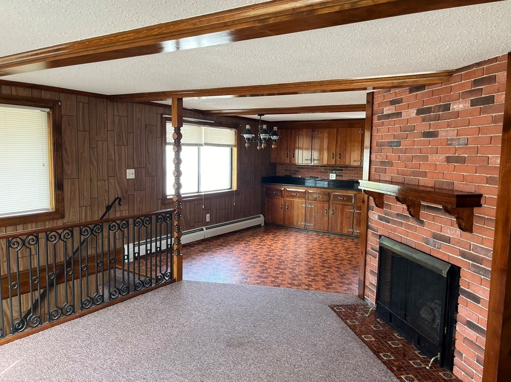 1 bedroom with large closet. Open living room kitchen concept. Features a non working fireplace....